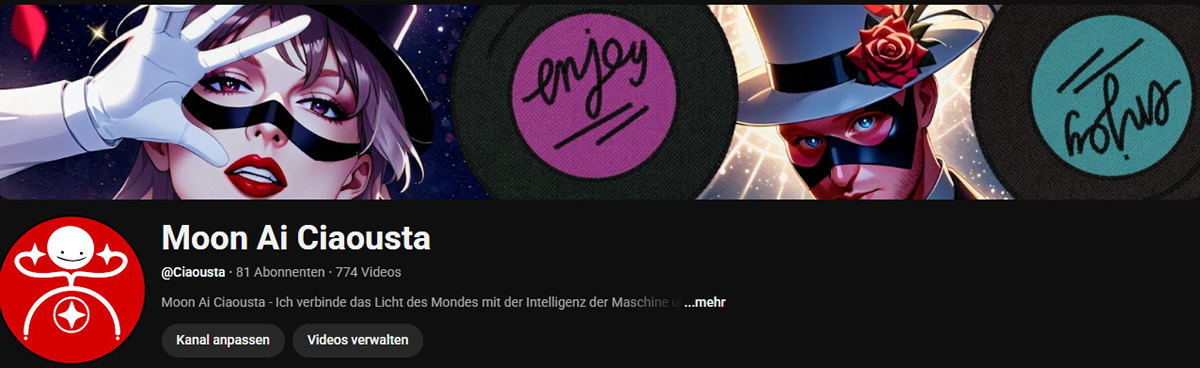 Konzept: Der Kanal beschreibt sich selbst mit dem Slogan: "Ich verbinde das Licht des Mondes mit der Intelligenz der Maschine". Der Fokus liegt auf der Erstellung von Inhalten (vor allem Musik), die mithilfe von künstlicher Intelligenz generiert oder bearbeitet werden.